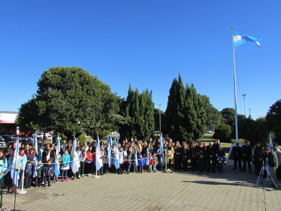 Desde las 11 hs del día de la fecha se realizó en la plaza Manuel Belgrano el acto oficial por el Día de la Bandera con la presencia del Sr. Intendente Municipal Dr. Jorge Cortés, el Secretario de Gobierno Dr. Martín Arpigiani, la presidenta del HCD Dra. Linda López, la Inspectora Distrital Sra. Jorgelina Falcone, la Inspectora de Educación Primaria Sra. Marta Mayoral, autoridades eclesiásticas, de Consejo Escolar, policiales, de las diferentes áreas municipales, bomberos,docentes, alumnos y público en general.